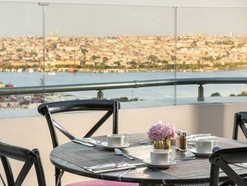 Терраса ресторана ( в котором завтрак) с видом на Босфор и Золотой рог. Ребёнку дали удобную кроватку бесплатно