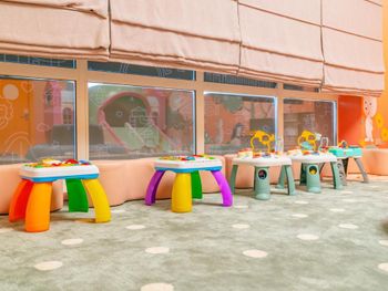 То что называю игровой зоной- это проход в ресторан , почему то с квадратными колонами не обеспечивающих безопасность детей(