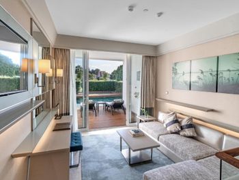 Хочется отметить потрясающий персонал этого отеля. Официанты, горничные, садовники, уборщики на пляже - все очень дружелюбны и старательны. Если и возникали какие-то недочеты, они исправлялись моментально, и мы всегда чувствовали себя услышанными и особенными. Отдельно хотим выразить благодарность и восхищение ассистентам - Ханне и Анастасии, которые постоянно сопровождали наш отдых онлайн и оффлайн (Ханна работала с нами точно на уровне опытного батлера), менеджеру пляжного клуба Зарине - очень профессиональной, обаятельной и умеющей находить отличные решения, - и совершенно выдающемуся руководителю службы Guest Relations Александре. Они сделали все возможное, чтобы наш отдых стал легким, приятным и совершенно эксклюзивным, чего мы не ожидали, отправляясь на свой страх и риск впервые в такой большой отель, да еще и категории all inclusive. Дети очень довольны аквапарком (взрослым), бассейном и футбольной академией (приятно было получить форму в подарок), а также огромным ассортиментом мороженого и "бесплатным" Starbucks. Завтраки очень разнообразные. Для ужинов советую рестораны a-la cart, особенно Mandarin. В главном корпусе для семьи из 4 человек рекомендую superlux - два смежных номера с небольшими ванными и маленькими балконами - вполне достаточно, если проводить весь день в пляжном клубе и возвращаться в отель только ночевать. Основной пляж достаточно чистый, обновлен в этом году, места на 1-й линии лучше занимать до 7:30 утра. Пляжный клуб один из лучших, что мы видели в мире. 30 кабан закреплены за виллами, остальные 4 можно бронировать гостям из других категорий номеров (лучше заранее, но только по приезду в отель). Кабаны оснащены розетками, холодильником, вентилятором под потолком, столиками, очень удобными диванами с отличными подушками и двумя шезлонгами снаружи.