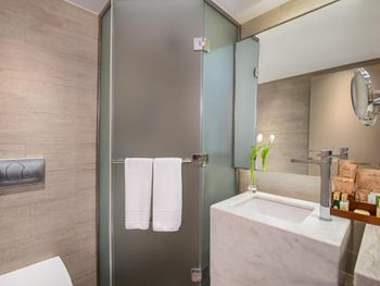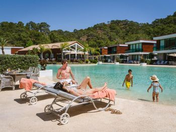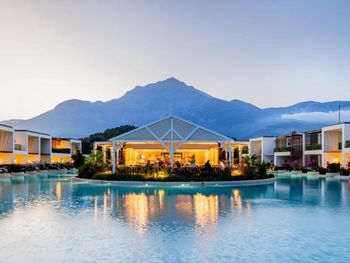 Отравили на завтраке платном в номер, в день выезда, поэтому мы немного задержались и с нас взяли ещё штраф, за поздний выезд. Такой наглости и обмана мы нигде не встречали!!! Не верьте там никому, врут все! Заказали фреш апельсиновый, принесли разбавленный с порошком и утверждают, что он настоящий, даже менеджер. Кофе тоже порошковый! Еда вся невкусная! Пришли к выводу что они нас ненавидят, но и мы к ним больше не поедем, а если вы собираетесь, то настройтесь на то что вас будут обманывать всюду на качество и деньги! Будьте осторожны! Все очень дорого , дороже чем в Европе и выглядит смешно, как дорогущая Деревня, и это ещё без преувеличения!