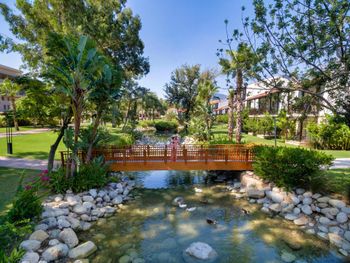 - Красивая, ухоженная территория отеля, где можно встретить фламинго и лебедей