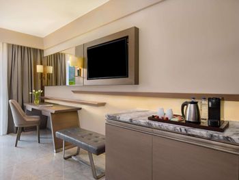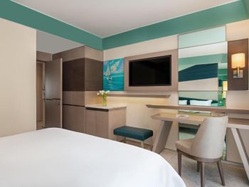 Заявленный, при бронировании номера с 30.10 по 08.11.18, кондиционер не работал. Жара в номере с 11 до 24 час была 27 Гр.С. Окна открыть нельзя сильный шум от дискотек. На просьбу в рецепшен поменять номер, получили истерику от сотрудника отеля, что мы сами создаем себе проблемы и он ничего делать не будет. Пришлось обращаться к руководству. Такое отношение персонала к своим проживающим, при стандартной цене номера 420 дол/сут, непонятна. Но смена номера большого облегчения не принесла, т.к. шум от дискотек был до поздней ночи. В номере на 2 этаже, где жила семья моего сына, в первую ночь, внучку искусали комары. Никаких средств в номере от них не предусмотрено. Во время нашего прибывания, отель работал последнею неделю, до 08.11.18. и многие развлечения (рестораны, детские клубы для детей, итд) в отеле уже не работали. Температура воды в аквапарке была 15-17 Гр.С.