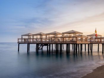 Напрягало также отсутствие часов на пляже ,чтобы купающиеся могли видеть время. Точнее одни часы есть возле пирса, которые установлены как-то боком и с мелким шрифтом, из-за чего время издалека все равно не видно.