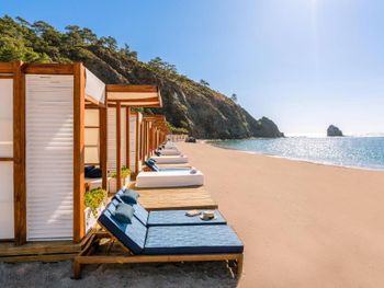 Общая проблема в отелях - занимать лежаки и на них не лежать. Пришла после обеда на пляж, еле-еле нашла себе место! Если бы была не одна, то так и не нашла бы. Два, три лежака вместе доступны не были, все занято, хотя и нет на них никого и пляж огромный! Большая просьба ко всем - когда уходите, забирайте с собой полотенца, чтобы дать понять, что место освободилось.