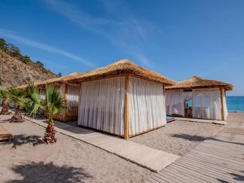 Очень хорошее расположение. Есть, где погулять утром или вечером. Рядом лес и горы, тропа, ведущая в Фазелис. Я утром в качестве зарядки ходила до пляжа Фазелиса и обратно.
