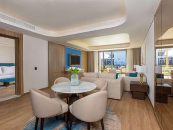 В номерах в Rixos Radamis Sharm El Sheikh установлен кондиционер, телевизор и сейф. Среди прочих удобств — платяной шкаф, чайник и мини-бар, а также собственная ванная комната с биде. В собственной ванной комнате есть душ, бесплатные туалетно-косметические принадлежности и фен. В Rixos Radamis Sharm El Sheikh в номерах имеется гостиная зона.