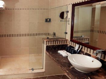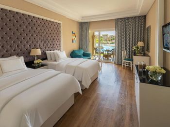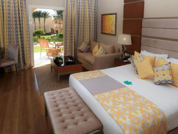 У нас был ужасно грязный номер: чёрная плесень в душе, текущий кран, грязные стены, грязные ковры (ноги после них становились чёрными), грязные шторы. Очень шумный кондиционер. Неприятный запах. И это в номере категории deluxe. После нашей жалобы номер заменили на аналогичный, но более чистый. Однако в нем тоже была чёрная плесень в душе и грязные шторы. (См фото) После очередной нашей жалобы шторы поменяли и попытались отчистить плесень химическими средствами. Плесень не удалось полностью отчистить, и целый день пахло химикатами. Море около берега все в водорослях, неприятно заходить. В общем и целом отель точно не соответствует заявленному уровню 5 звёзд. Даже по меркам Египта. Если вам хочется люксового отдыха, то присмотритесь к другим отелям, расположенным в том же районе.