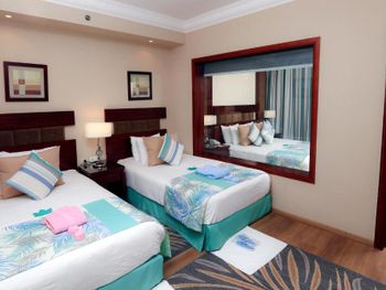 Номер отличный, каждый день убирались. Еда вначале была очень вкусная и разнообразная. Было изобилие всего, но, начиная с 7 января, когда праздники закончились, разнообразия почти не было. Разочаровало, что в другом отеле с аквапарком еда вкуснее. Но то, что можно было пользоваться всеми благами другого отеля - большой плюс. Вечеринки были классными, особенно порадовал салют на 7 января. Коктейли вкусные. Рестораны при отеле супер. Очень советую рыбный. Персонал вежливый, всегда готовы помочь. Мы познакомились с множеством отличных людей, с которыми потом отдыхали вместе. Много активности, перепробовали почти все: большой теннис, настольный теннис, волейбол, бильярд.