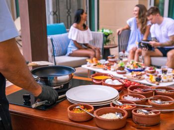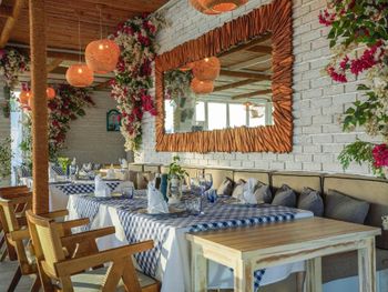 В течение всего дня в центральной части курортного отеля работает ресторан À La Turca. Кроме того, гости могут посетить 2 фирменных ресторана для истинных ценителей изысканной кухни — ресторан средиземноморской кухни L’Olivo и ресторан Aqua & More. В 2 ресторанах у пляжа и бассейна в течение дня предлагают разнообразные напитки и закуски. Вечером можно отдохнуть в лаундже-кальянной.