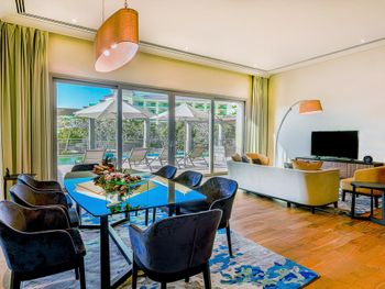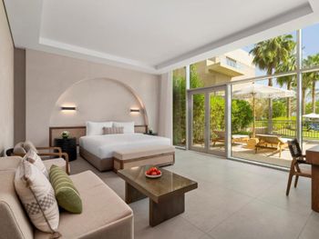 Отель очень старый, все потрёпанное, сильно удивлена, что Rixos в таком состоянии. Номера жуткие: Мебель старая, ванные комнаты неприятно заходить, в унитаз страшно смотреть ( внутри то ли осадок , то ли ржавчина), из душа вода постоянно вытекала рекой. Кондиционер работал странно, постоянно боролись с ним, дул ледяным воздухом. Впервые вижу такое количество птиц , кричащих с 4 утра и гадящих на все вокруг, на балконе все загажено пометом птиц. Несколько раз пыталась попасть на крытые лежаки, но девушка каждый раз говорила, что везде резерв, так и не поняла, когда можно их забронировать. С лежаками в принципе проблема, если вышел после 10:00, то найти практически невозможно. Вся трава, лежаки - все вокруг в помете от птиц, ужасно неприятно. В столовую , если не пришёл к началу приема пищи, то стоит очередь. Отель работает по системе все включено , с одной стороны удобно с детьми, но сильно однообразна пища. На завтраки ходили 2 раза, потом перекусывали в баре на первой этаже( здесь поприятней было). Вечером скука , делать нечего, в отеле есть единственный бар на улице , где можно посидеть за бокалом вина и фоном играет слабо музыка до 23:30. Поэтому почти каждый вечер уезжали в другие места. Ну и конечно людей невероятное количество в отеле. Из отеля добраться куда- либо можно только на такси, стоимость 500 дирхам( почти 10 тысяч рублей).