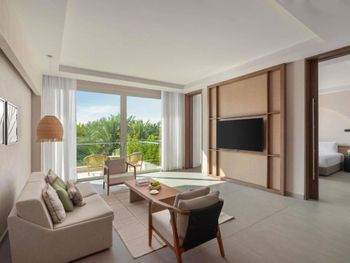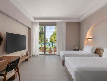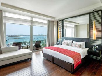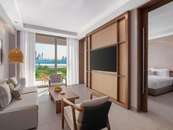 Красивый вид из номера, приятный пляж. Встречать Новый год в этом номере Было бы шикарно с видом на колесо обозрение. Чисто. Отличные аниматоры в детском клубе. Выбрали этот отель из- за детского клуба. Был даже мини зоопарк привозной. Очень Приветливый персонал, помогающий ресепшене.
