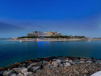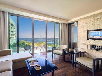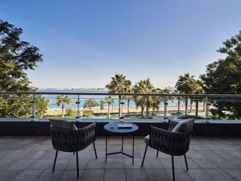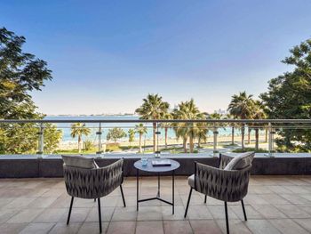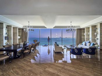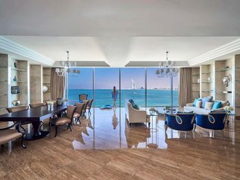 Роскошный пляжный курортный отель Rixos The Palm Dubai с обслуживанием по системе «все включено» расположен на знаменитом острове Палм-Джумейра. Из отеля открывается панорамный вид на лазурные воды Персидского залива, великолепный вид на район Дубай-Марина и достопримечательности Дубая.