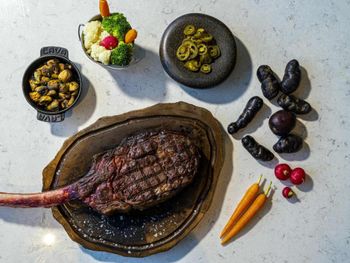 Стейк хаус(кафе) - 60м2, отвратительное место, принесли рибай(USA)- 60% жира, не очень приготовление; второй вид стейка *рибай AUSTRALIA*-вообще не *рибай*, обычная сухая жёсткая говядина; детские бургеры один майонез и вообще не вкусно - дети есть отказались.