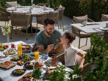 В течение всего дня в центральной части курортного отеля работает ресторан À La Turca. Кроме того, гости могут посетить 2 фирменных ресторана для истинных ценителей изысканной кухни — ресторан средиземноморской кухни L’Olivo и ресторан Aqua & More. В 2 ресторанах у пляжа и бассейна в течение дня предлагают разнообразные напитки и закуски. Вечером можно отдохнуть в лаундже-кальянной.