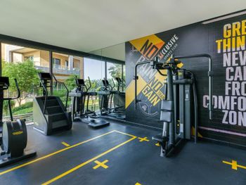 Спортзал мягко говоря не очень, не до укомлектован( нет ни одной штанги и стоек для жима лёжа и приседа), маленький, 40м2 максимум. Нет ни одной штанги и т.д., только гантели и тренажёры. Уличный спортзал из дерева - только на картинке, на самом деле там нет штанги, гантелей, боксёрской груши,( брусья , турник и всё) всё это на солнце в 50 градусов жары. Катание на сапах-этого нет. расписание активностей- попробуй найди. В сравнение с Rixos Sungate - вообще ни о чём.