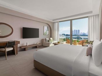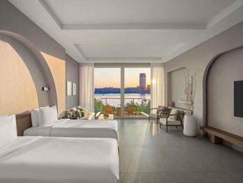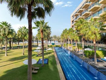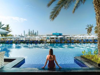 Роскошный пляжный курортный отель Rixos The Palm Dubai с обслуживанием по системе «все включено» расположен на знаменитом острове Палм-Джумейра. Из отеля открывается панорамный вид на лазурные воды Персидского залива, великолепный вид на район Дубай-Марина и достопримечательности Дубая.