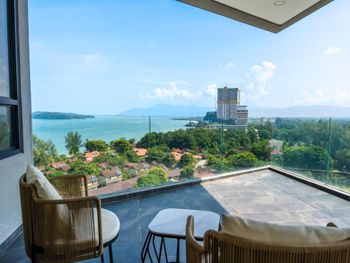 У отеля нет своей территории. Вокруг отеля забор, на расстоянии 4 метров. Далеко до пляжа . Путь проходит через огромную стройку, которая портит весь вид на море. Лучше брать номер с видом на город, он дешевле и не смотришь на строительные работы. Да и сам вид из окна перегорожен огромным холмом с обезьянами. В бухту на пляже впадает какая то речка с очень специфическим запахом. Хорошо что взяли этот отель всего на пару дней.