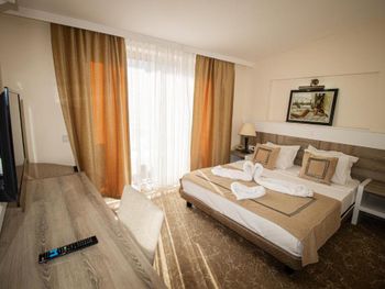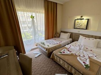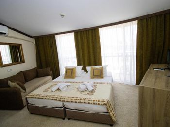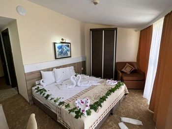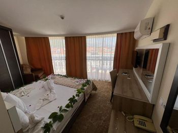 В общем, отель оставил больше положительное впечатление, цена вполне соответствует качеству - твердые 4 звезды. У нас был большой 2х комнатный номер со всеми удобствами, 2мя балконами, телевизорами и холодильником. Питание хорошее, достаточно разнообразное, напитки (холодные, горячие, алкогольные) всегда в доступе. Есть комната отдыха с бильярдом, теннисом и настольным футболом. Смена полотенец и вынос мусора ежедневные. Пляж достаточно просторный, лежаков на всех хватает.