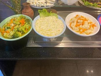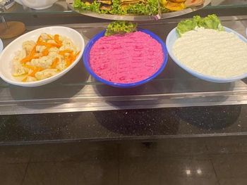 Неплохая еда,я не привередлива ,есть выбор,на завтраки обычно ,яйца вареные,жаренные,омлет,блины,соленые сыры,колбаса(не брала),варенья разные,салаты,оливки несколько видов,йогурт густой(мне понравился),на обед /ужин мясное,рыбное(рыба не понравилась),салаты,зелень,печенные,тушеные овощи,разные гарниры,штук семь-девять видов сладостей,арбуз,дыня.Чай,кофе(не очень),напитки.Я наедалась с головой.