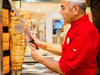 В ресторане отеля подают традиционные блюда турецкой кухни провинции Анталья.