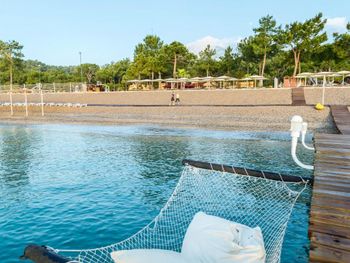 Море очень прозрачное, побережье мелкая галька, очень красиво обустроена территория отеля.