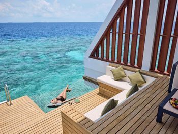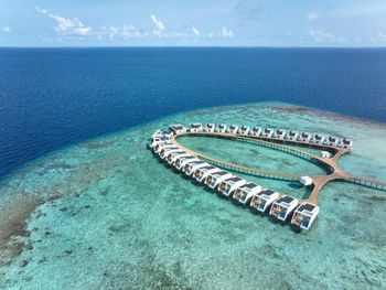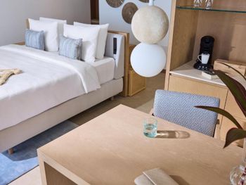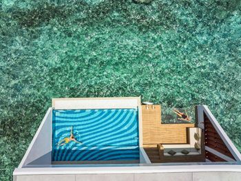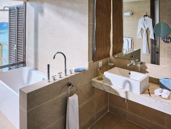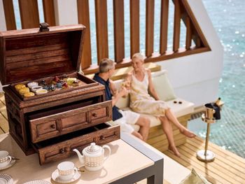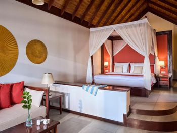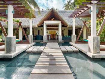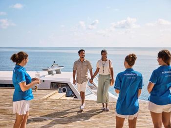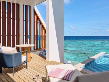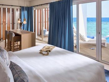 Отель превзошел наши ожидания! Все великолепно-от бронирования (отель пошел на встречу и поверил "на слово" при неработающих русских картах) до проводов на самолет. Еду ставим на 1-е место в мире, по системе все включено так вообще божественно! Вилла на воде чистая, просторная, удобная, в номере все есть, очень достойно, кровать хорошая, терраса тоже полноценная - спи, сиди, купайся, мойся, кайфуй! Выход с вилл прекрасный - всегда есть глубина, при этом риф в шаговой доступности, видели акул, приплывают скаты, нашли норки больших групперов, плыли однажды с большими каранксами, наблюдали за дельфинами, мелких рыб всяких разных много. Ночью на воде вспышки планктона, очень красиво! Каждое утро с террасы наблюдали охоту каракатиц и скатов. Уборка номера хорошая, пополнение воды и мини бара четкое. Система все включено - завтрак, обед, ужин (объедение! из напитков в основном ресторане приносят пиво и вино); все бары на территории резорта (отличный выбор напитков, алкоголь известных международных брендов, даже то, что не включено, по цене дешевле, чем у нас в гипермаркете Лента), В номере 4 литра вкусной воды каждый день. Минибар и заказ еды в номер за доп. плату. Брали бесплатно ласты. В отеле часто тематические вечеринки, в которых принимают участие большинство сотрудников отеля. Отдельное спасибо персоналу отеля за высокий уровень сервиса! Отдельный пламенный привет Виктории, которая сделала наш отдых еще более приятным и комфортным, наша палочка-выручалочка, всегда была с нами на связи по Ватсап, это очень удобно! Привет боссу "итальянской мафии", он же босс главного бара;) Генеральный менеджер Юрген всегда с улыбкой, всегда держит руку "на пульсе". Спасибо Рауфе за помощь!!! Ездили не в сезон, но этого не заметили вообще, дождь шел небольшой и ночью. Днем, как правило, светило солнце, никаких особых волн не было ни разу.