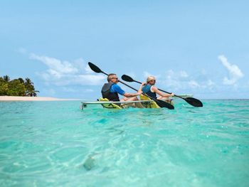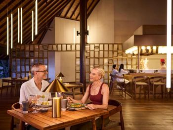 Это наша первая поездка на Мальдивы, и все было замечательно! Превосходный отель, с прекрасным и очень душевным персоналом и восхитительной едой. Каждый ужин был отдельным развлечением, на который ты идешь и не знаешь, как повара удивят тебя в этот раз! Еде 10/10 Сам остров - супер! Зеленый, не очень маленький. Не смотря на полную занятость отеля мы практически не встречали других людей. Риф классный - множество рыб и морских обитателей. Персонал - выше всех похвал! Они делают это место особенным, большое спасибо за ваш труд! С удовольствием вернемся еще