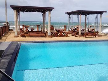 Отель превосходный, находится на берегу океана, ресторанчик и лежаки с романтичным видом на океан. Брали номер люкс -2 стены панорамные с видом на океан, любовались закатом и слушали шум волн! Есть бассейн, если пройти на пляж Далавелла -там есть лагуна с черепахами, с ними можно поплавать- это просто чудо!