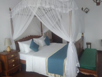 Интерьер симпатичный, удобная большая кровать с сеткой от комаров (и смотрится красиво)
