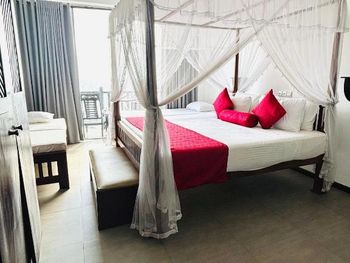 Завтраки вкусные. Вид из номера на океан - просто без комментариев, потрясающе! Персонал вежливый, очень отзывчивый! Интерьер симпатичный, удобная большая кровать с сеткой от комаров (и смотрится красиво) Дали мыльные принадлежности, зубные щетки, в номере всегда была вода, пакетики с кофе, чаем, сливками, сахаром. Чайник и фен норм (феном мы почти не пользовались). Мы жили в номере для 3 человек - одна 2-спальная большая кровать, одна полноценная 1-спальная. Номер соответствует фото. В бассейне не плавали, он довольно простенький тут, ездили/ходили на пляж. Рядом с отелем куча тук-тукеров, подвезут, куда скажете, надо торговаться. Крутой пляж в 5 минутах езды или 25 минутах пешком - Унаватуна Бич, желтые зонтики - там бесплатные лежаки, красиво, немного людей и водичка шикарная. Отдельное спасибо за то, что нас поселили во временный номер, так как мы приехали ночью и наш номер был еще занят!