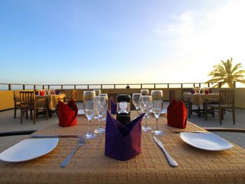 Еда не вкусная. Нельзя со своим алкоголем посидеть у бассейна. Бассейн маленький. Мало столиков на открытом воздухе, и все, кроме одного на солнце, нет тени.