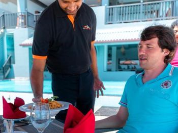 Нас заселили сперва в один номер, в нем оказалась забита канализация. мы долго не могли найти администратора, когда нашли он пришел с каким-то пьяным в стельку мужчиной тот кричал, что-то на их языке, перегарище, вообщем ужас… нас переселили, и мы жили на четвертом этаже, что б спуститься в низ на лифте нужно было идти на третий этаж, так как на нашем этаже лифт не работал. В номере стояла дополнительная кровать, которая и без того в небольшом номере забирала ещё место, я попросила убрать её, мне отказали. Что касательно питания, должен был быть шведский стол, по факту на выбор либо тунец либо курица и так на завтрак, обед и ужин. Один раз был шведский стол, и опять же тунец либо курица, плюс острое до ужаса. Wi-fi вообще не работает. Отель остро нуждается в ремонте!!