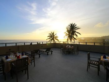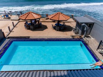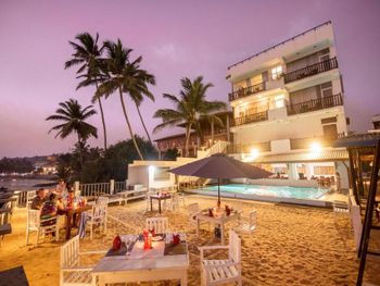 Отель превосходный, находится на берегу океана, ресторанчик и лежаки с романтичным видом на океан. Брали номер люкс -2 стены панорамные с видом на океан, любовались закатом и слушали шум волн! Есть бассейн, если пройти на пляж Далавелла -там есть лагуна с черепахами, с ними можно поплавать- это просто чудо!