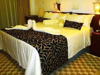 Номер абсолютно не соответствует пятизвездочному отелю, даже для этой страны. Не было утюга, сейфа, попросили принести персонал - принесли. Однако гладильную доску к утюгу принести не догадались, и сейф мы так и не смогли открыть. Заказывали номер с двумя кроватями, на второй - даже не было подушки, от чего остались в небольшом недоумении. Расположение душа в ванной комнате просто убило - четко по центру, между унитазом и раковиной, не изолирован. Как ни купайся, в воде будет вся ванная комната. Сказать, что до пяти звезд не дотягивает отель - ничего не сказать!