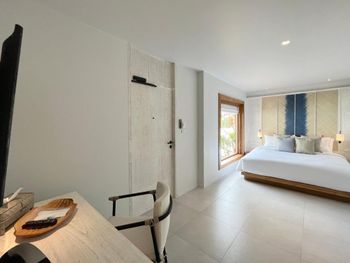 Resort style rooms and suites feature wooden furniture and fixtures with rich Thai fabrics. Ocean or garden views are available from private balconies as well as beachfront room locations.