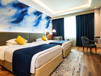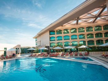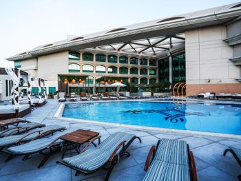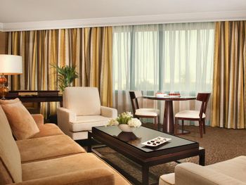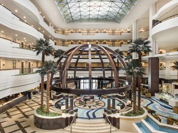 Отель Mövenpick Grand Al Bustan расположен в 1 км от международного аэропорта Дубай. К услугам гостей современные роскошные номера и 7 ресторанов, в которых подают блюда различных кухонь. На территории отеля есть открытый бассейн c регулируемой температурой воды, детский бассейн и корты для игры в теннис и сквош. Гостям предоставляется широкий выбор спа-процедур.