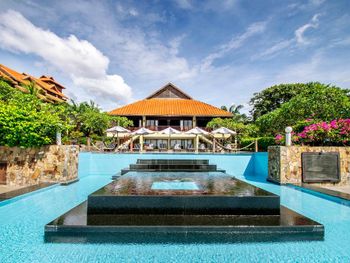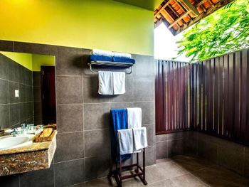 Жили в вилле с бассейном на второй линии - открывается красивый вид на пляж. Номер достаточно большой. Туалет и душ вынесены на улицу (под крышей). Уборка производится ежедневно. Пляж чистый, на пляже работают несколько "спасателей" и смотрят за тем, чтобы вас не унесло на камни. Вход в море чистый (без камней) и дальше камней в море тоже нет. Территория отеля большая и очень зелёная. Завтраки для такого отеля достаточно скудные, но голодными не останетесь.