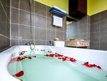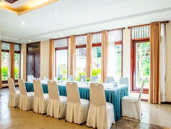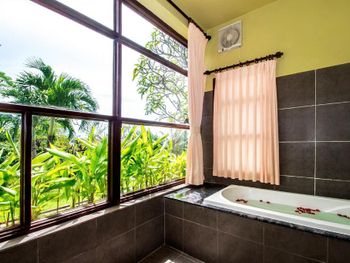 Чистота, состояние мебели и помещений оставляют желать лучшего. Постельное и полотенца зачастую серые. Множество постояльцев из Азии, а это постоянный шум, крики. Снимали виллу целиком, внешний блок кондиционера гремел так, что ночью просыпались дети. Такой же эффект от кровати, очень скрипучая. Какой-то «специалист» по кондиционерам дважды прибегал, стало чуть тише и на том все, делали только видимость. В шкафу отвалилась дверь и чуть не пришибла ползающего по полу ребёнка. Детские кроватки сделаны из досок и гвоздей ещё в 50-х, покрашены в те же годы. Они шатаются и матрас лежит под углом, приходилось тапочками хоть как-то подпирать. С детьми точно не туда. Завтраки за все 13 дней не поменялись ни разу, морепродуктов не было вообще. Бар у пляжа никогда не работает. Сам пляж маленький, а лежаки наши земляки используют, как в Крыму и Сочи (занимают перед завтраком, а приходят туда перед ужином). При выселении нас ещё попытались развести на счёт по мини-бару, которым мы не пользовались. Показывали какие-то чипсы и напитки, мол мы их использовали. В итоге выселялись минут 40, пока они все выяснили. Итог: не ориентируйтесь на фото, стоимость номеров и вилл этого отеля сильно завышена.