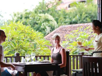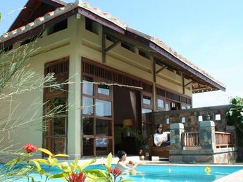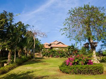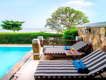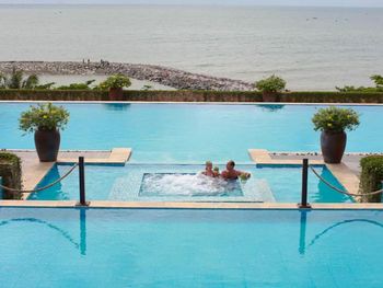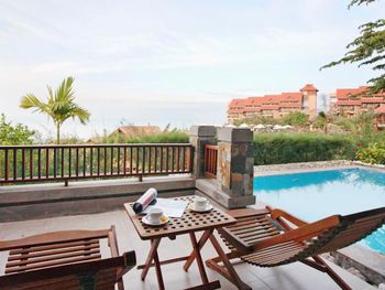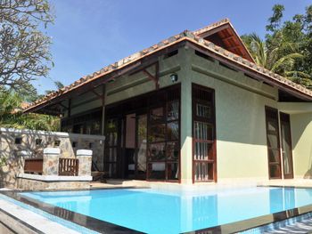 Жили в вилле с бассейном на второй линии - открывается красивый вид на пляж. Номер достаточно большой. Туалет и душ вынесены на улицу (под крышей). Уборка производится ежедневно. Пляж чистый, на пляже работают несколько "спасателей" и смотрят за тем, чтобы вас не унесло на камни. Вход в море чистый (без камней) и дальше камней в море тоже нет. Территория отеля большая и очень зелёная. Завтраки для такого отеля достаточно скудные, но голодными не останетесь.