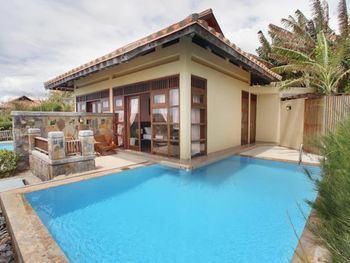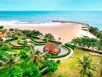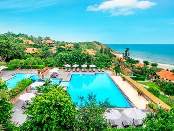 Красивейшее место!!Бронировали данный отель через букинг,по невозвраной системе.Сняли с карты деньги сразу.Это был наш первый опыт "своим ходом",так что некоторые вещи мы не учли.Забыли взять карту,по которой бронировали данный отель,а она оказалась нужна при заселении.Замечательная девушка на ресепшен решила данную проблему,но мы очень переживали.Спасибо ей огромное,к сожалению имени её я не знаю.Огромная территория отеля,с красивыми цветами и деревьями,всё очень ухожено.Есть 2 больших бассейна,но мы так и не искупались там, хватало своего бассейна в вилле и моря)))Жили в вилле с собственным бассейном #025.Потрясающий вид на море и пляж!!!Вода в бассейне очень тёплая,что очень радовало.Вилла полностью соответствует всем ожиданиям и даже больше))Пляж широкий с чистым и спокойным морем(отдыхали в начале марта).Никаких песчанных блох нет.Купались и наслаждались морем!По пляжу ходит сотрудник отеля и смотрит за гостями,что придавало чувство безопасности. Уборка каждый день.Завтраки очень понравились,выбор достаточно большой и вкусно.Бесплатные автобусы ходят каждый день в муйне и фантьет,если не успел то можно на такси,недорого.Отличное место для семьи и пар))Да и для компании друзей.Райское место))))