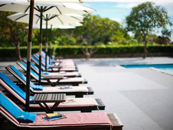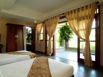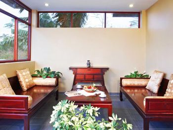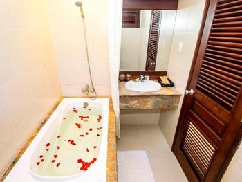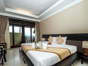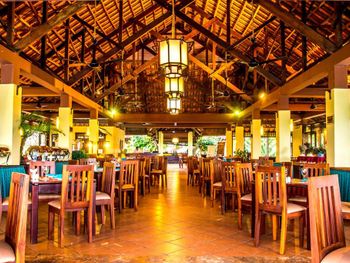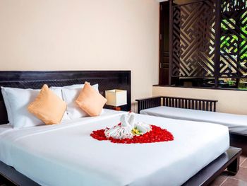 Чистота, состояние мебели и помещений оставляют желать лучшего. Постельное и полотенца зачастую серые. Множество постояльцев из Азии, а это постоянный шум, крики. Снимали виллу целиком, внешний блок кондиционера гремел так, что ночью просыпались дети. Такой же эффект от кровати, очень скрипучая. Какой-то «специалист» по кондиционерам дважды прибегал, стало чуть тише и на том все, делали только видимость. В шкафу отвалилась дверь и чуть не пришибла ползающего по полу ребёнка. Детские кроватки сделаны из досок и гвоздей ещё в 50-х, покрашены в те же годы. Они шатаются и матрас лежит под углом, приходилось тапочками хоть как-то подпирать. С детьми точно не туда. Завтраки за все 13 дней не поменялись ни разу, морепродуктов не было вообще. Бар у пляжа никогда не работает. Сам пляж маленький, а лежаки наши земляки используют, как в Крыму и Сочи (занимают перед завтраком, а приходят туда перед ужином). При выселении нас ещё попытались развести на счёт по мини-бару, которым мы не пользовались. Показывали какие-то чипсы и напитки, мол мы их использовали. В итоге выселялись минут 40, пока они все выяснили. Итог: не ориентируйтесь на фото, стоимость номеров и вилл этого отеля сильно завышена.