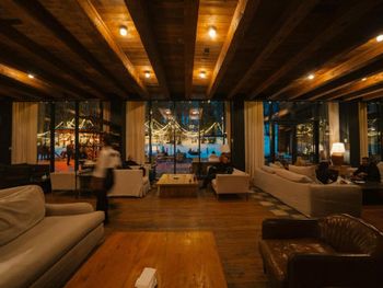 Это просто худший сервис, который я видела. Девушки на ресепшн ничего не знают (работают ли склоны, есть ли прокат), постоянно забывают о просьбах. В номере очень мягкий матрас и подушки, на них неудобно спать - попросили заменить, про это забыли. Попросили посуду в номер, чтобы посидеть на балконе - так и не принесли. Сервис в ресторане ужасный. На завтраке 5 раз просили принести кофе. Специально забронировали стол на вечер. Пришли - он занят, другие столы забронированы. В итоге сели около кухни, ждали заказ около часа! Сначала принесли горячее, только потом закуски, в итоге стол заставлен. Вино подливали себе сами. Официантов не дозваться.