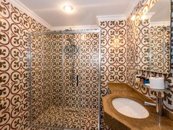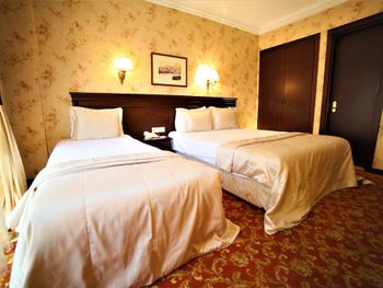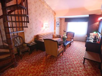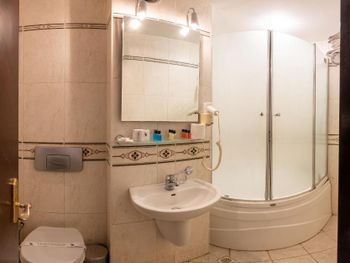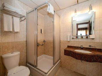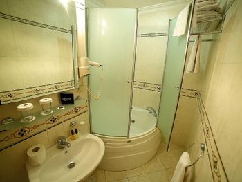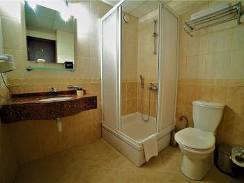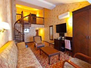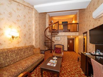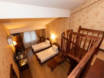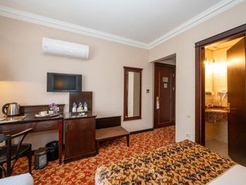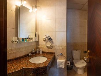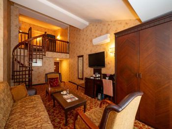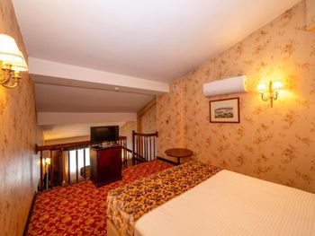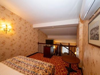 Очень, очень и очень «уставший» отель. Забронировали Люкс, в реальности сложно его так назвать) одна маленькая комната с двумя кроватями и 10 см проходом между ними и коридор со старым рваным диванчиком ( вторая комната с отдельной кроватью в описании). Бронь была на 4х, по факту номер был подготовлен - для 3х. Пришлось просить кровать ( застелили на диванчике), белье, полотенца. Малюсенький неприятный санузел со старой сантехникой, плесневой плиткой и т. Фото санузла совершенно не соответствовал. Отель совсем уставший, драные обои в коридоре особенно оставляют впечатление Да, и халат, действительно, заявлен, но не выдают. Кто-то писал ранее..