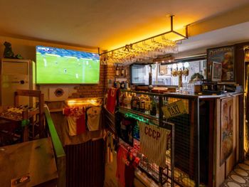 внизу кафешки, и если у вас детки, то музыка играет до ночи.