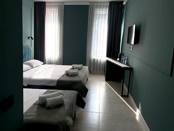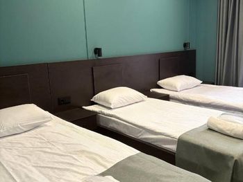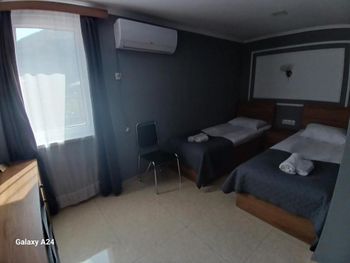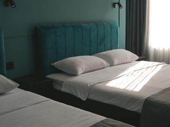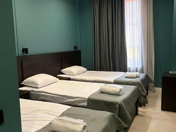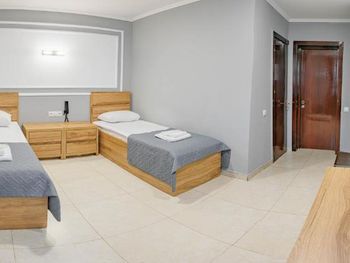 Бронировали три номера для отдыха с семье. При бронировании указали, что в одном номере будут проживать трое, принесли раскладушку с двумя сломанными ножками. Для уборки в номере нужно сдавать ключи на ресепшен, но даже при сдаче ключей, уборки толком никакой нет, а если и убираются, то просто меняют полотенца. После разговора с персоналом, на следующий день в номере убрались получше, даже заменили постельное белье, но оно было с дырками, в ванной комнате налет, что тоже показывает кажется уборки. Халатов, вешалок, освежителя воздуха тоже нет, хоть они и указаны в удобствах при бронировании, на ресепшене жмут плечами. Так же в одном из номеров был таракан, который так и остался на том же месте после уборки. Что касается завтрака, в столовой всего 4 маленьких стола, мы прождали час, чтобы нам принесли еду.