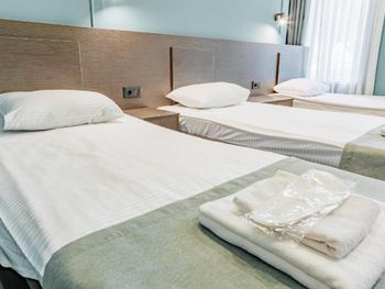 1. Расположение: указано что отель находится в 5 км от аэропорта, возможно по прямой это и так, но в реальности, по дороге, около 20, так что дорога до аэропорта взяла минут 22. Так что надо это учитывать. 2. Указано что завтрак входит в стоимость номера, но на сайте нигде не указано со скольки завтрак. В реальности завтрак начинается в 09.00 поскольку мы уходили в 8 утра, то мы остались без обещанного завтрака 3. Как это ни странно, но мы не нашли лифта, поэтому с чемоданами пришлось ползать по лестницам что не очень удобно. 4. Вечером когда заехали, был очень слабый напор воды, а с утра воды в кране вообще не было. Не понятно, это временное совпадение или регулярная традиция. 5. Я два раза написал , что нам нужно номер с раздельными кроватями, но нас поселили в номер с одной двуспальной кроватью, правда после указания на ошибку нас переселили в номер с двумя кроватями.