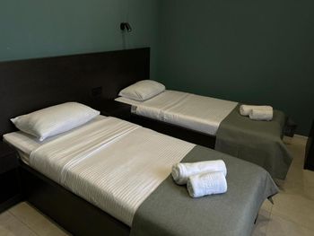 Изначально бронировали номер с одной большой кроватью, при заселении оказалось их две раздельные( за кровать мы дополнительно доплачивали) в приложении. Кто боится пауков-вам это место точно не подойдёт. Полотенце для душа в номере было одно .