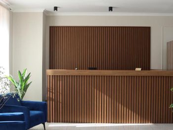 Неудобный вход, горка, ступени. В самом отеле с багажом помогли сотрудники, спасибо. Стресс выселение в 12:00, девушка просто громко кричит на английском и тарабанит во все двери показывая на выход. У меня честно был шок, я такого нигде в мире не видела выселения. Будьте немного вежливее, вы всё таки работаете с гостями.