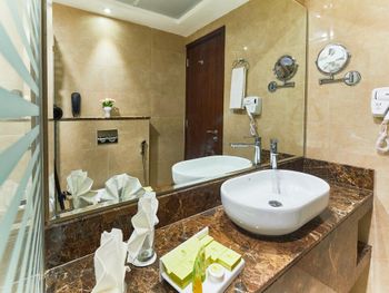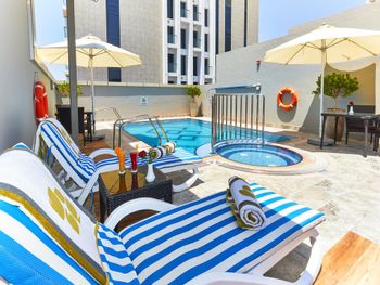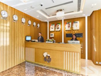 При заказе нам подарили трансфер с аэропорта на Лексусе. Отель производит очень хорошее впечатление, такое ощущение, что он тянет даже на большее количество звёзд: многоэтажный дом, полностью отведённый под отель, прикольный вход со стеклянной полукруглой дверью (как в отелях из фильмов), большие лифты, везде ковры и чистота, в дверях электронные замки на карточках, вежливый персонал. Переживал на счёт шума, начитавшись отзывов, однако вокруг все стройки давно уже кончились, в номере было абсолютно тихо. Присутствовал кондиционер с регулировкой всего и вся. Неприятных запахов в номере не было (просили номер для некурящих). При заселении несмотря на наш плохой английский проблем с коммуникацией с персоналом не было, все пытаются вам помочь и искренне вникнуть в вопрос. Наши вещи взял отдельный сотрудник и на тележке довёз их до номера, а заодно и проводил нас до него. Внутри отеля есть на первом этаже недорогая кафешка со шведским столом всего за 24 дирхама на человека (можно заказать номер сразу с завтраками, так будет дешевле). Не знаю, почему некоторые её критикуют, по-моему, очень хорошее соотношение цена/качество. На выбор примерно 15-20 разных блюд: кусочки пиццы, капкейки, сосиски, картофель фри, нагетсы, овощи, йогурт, разные хлопья с молоком, кексы, пирожные, всякие добавки типа мёда, варенья, сыра и многое другое. Также подходит официант и предлагает приготовить блюда из яиц. Рядом в соседнем здании слева есть вкусная шаурмичная, работающая допоздна, где если лень куда-то идти, можно за копейки поесть, а в соседних мини магазинах под неё купить апельсинового сока. В отеле живёт много русскоязычных, блюда в кафешке даже переведены на русский. В номере каждый день давали бесплатно воду по 2 0.5 бутылки, есть холодильник, чай/кофе/сливки. Если даже просили комнату не убирать, вечером приходил сотрудник и спрашивал, всё ли ок, не нужно ли чего. Приятно. Отдельная благодарность сотрудникам Oleti и Bayzid за профессионализм в работе.