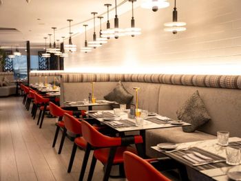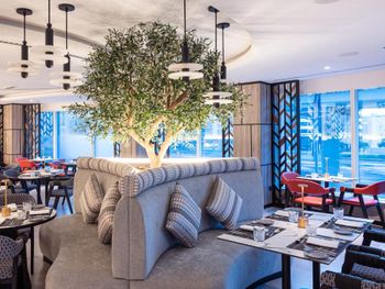 В отеле Rose Rayhaan by Rotana работают 3 ресторана и бара, в том числе ресторан O'lio & Violet. В этом ресторане вместимостью 160 человек в течение всего дня подают разнообразные блюда на завтрак, обед и ужин.